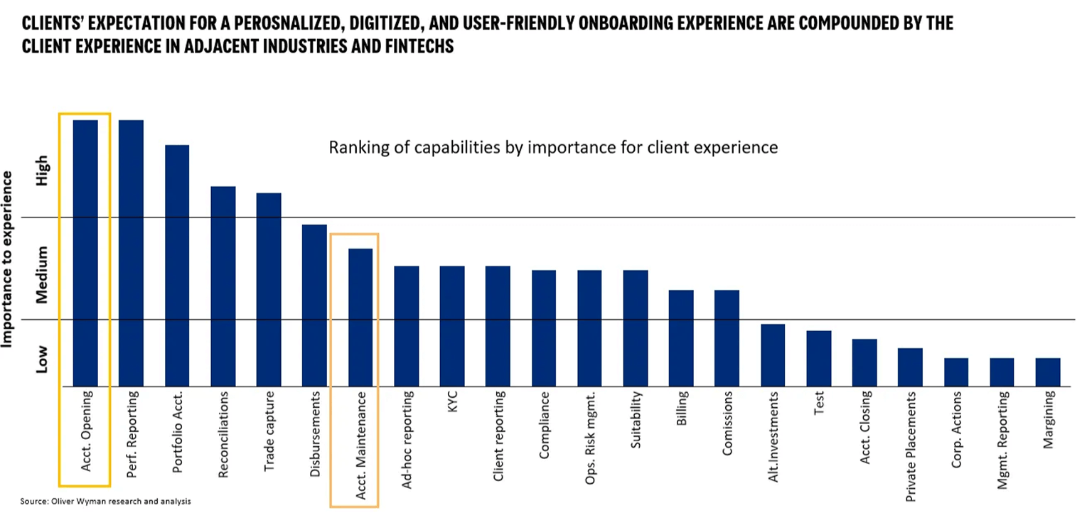 First, there's preparation: each custodian has its own requirements per account type, and those requirements change. Keeping up with those updates is expensive, and the constant change management across the organization causes confusion.